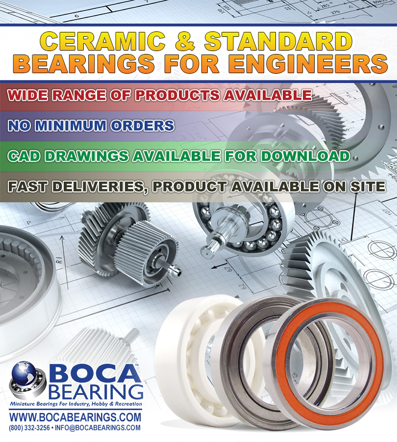 Through the years the Boca Bearing Company has worked closely with designer engineers to help them through the different stages of product design, development and improvement. Boca Bearings maintains one of the largest inventories of full ceramic, ceramic hybrid and standard bearings for engineers and new product lines have recently been added.