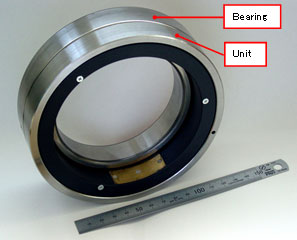 The “Lubricating Oil Supply Unit with Self-power Generator” features a generator, battery, controller, lubrication tank and oil delivery pump built in to the spacer of the outer ring adjacent to the bearing. Electrical power is generated from the temperature difference between the inner and outer rings of the bearing when the bearing is rotating, which drives a pump to supply micro amounts of lubricant to the inside of the bearing. The amount and interval of lubricant supplied is controlled via a program, which ensures reliable lubrication over a long period of time. This unit does not require any additional piping or wiring, and can be assembled on to spindles of machine tools in the same way as conventional bearings.
